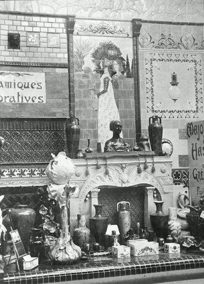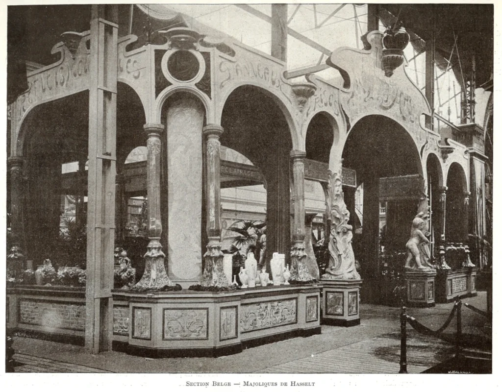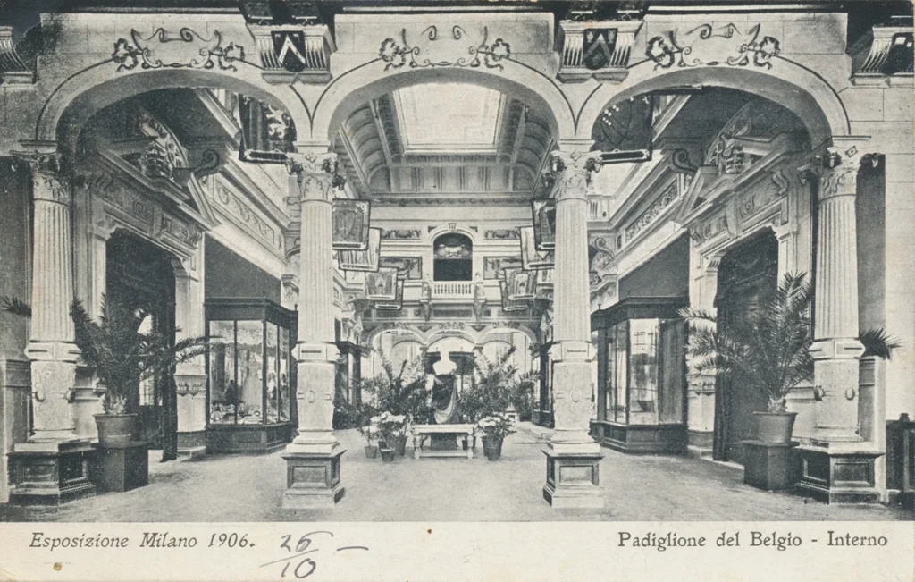 Binnenzicht van het Belgisch paleis op de wereldtentoonstelling van Milaan in 1906, van de opstelling van de Hasseltse keramiekfabriek zijn geen beelden bekend. Commercieel directeur Alphonse Gatz bezocht de tentoonstelling diverse malen, zijn reizen naar Italië waren in die tijd groot nieuws in de kleine provinciestad Hasselt.