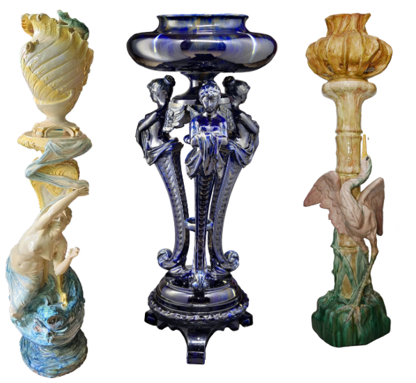 Geïnspireerd door de monumentale objecten die de gebroeders Massier produceerden begaf het management van de Hasseltse fabriek zich eveneens in deze nichemarkt gericht op de gegoede burgerij. Het concipiëren en produceren van deze grote objecten gebeurde in verschillende fases waarbij eerst een aantal onderdelen apart gemaakt werden die daarna met engobe specie aan – en op elkaar werden gezet. De afwerking in diverse kleuren was omwille van de omvang en het complex samenspel tussen kleurkeuzes en stooktechniek het sluitstuk van een lang en arbeidsintensief productieproces. De mooie kwaliteit en de geslaagde afwerking van de teruggevonden stukken zijn het bewijs dat de Hasseltse fabriek een zekere expertise ontwikkelde voor de productie van grote objecten.